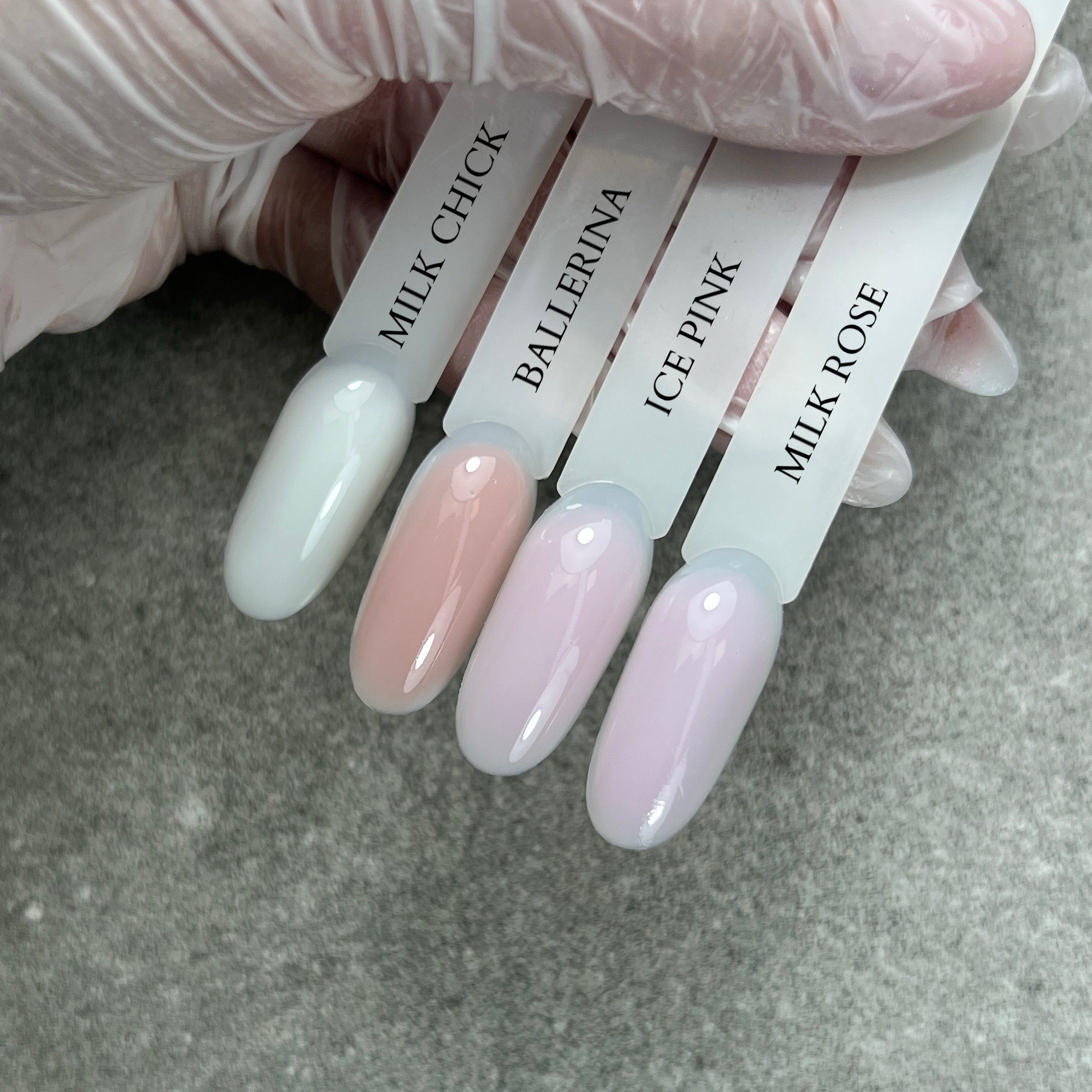 - Stendere uno strato sottile di Gummy Base Milk Chic e polimerizzare in lampada UV/LED per 60 secondi.
